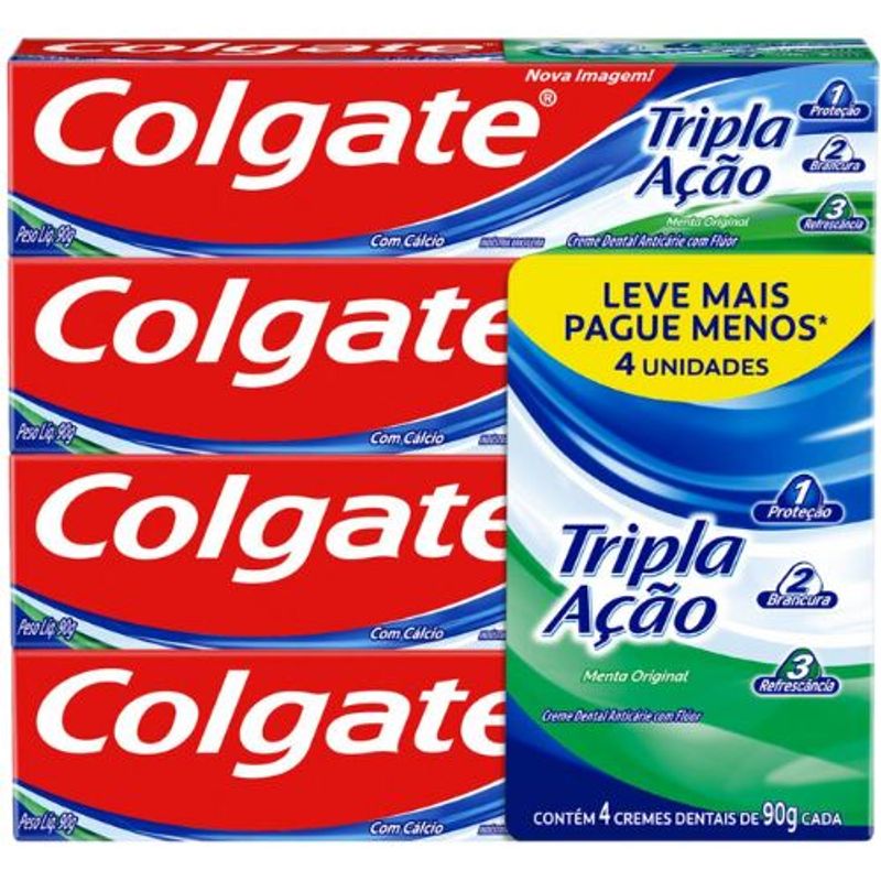 A pasta de dentes Cr Dent Colgate Tripla Ação Menta 90 g (kit com 4 unidades) oferece limpeza profunda, proteção contra cáries e controle da placa bacteriana. Sua fórmula de tripla ação fortalece o esmalte, previne o tártaro e mantém o hálito fresco por mais tempo. Ideal para uso diário, proporciona cuidado completo para toda a família, garantindo dentes mais saudáveis e um sorriso mais confiante. O kit com 4 unidades traz praticidade e melhor custo-benefício, tornando o cuidado bucal diário mais eficiente e seguro.