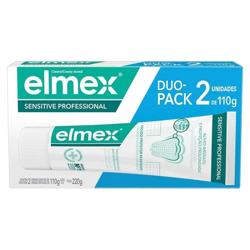 A pasta de dentes Cr Dent Elmex Sensitive 110 g (kit com 2 unidades) foi desenvolvida para quem sofre com dentes sensíveis e busca alívio instantâneo aliado à proteção duradoura. Sua fórmula avançada combina tecnologia de bloqueio de túbulos dentinários expostos com a ação remineralizante do flúor, criando uma barreira protetora contra estímulos como frio, calor, doce ou ácido. Além disso, contribui para o fortalecimento do esmalte e auxilia na prevenção da cárie, proporcionando limpeza completa e sensação de frescor prolongado. Ideal para o uso diário, este kit dupla unidade garante melhor custo-benefício e maior autonomia no cuidado bucal. Recomenda-se escovar os dentes pelo menos duas vezes ao dia ou conforme orientação profissional, e manter a boca adequadamente enxaguada. Com Cr Dent Elmex Sensitive você oferece à sua boca uma solução eficaz, confiável e de uso prático para sensibilidade dental.