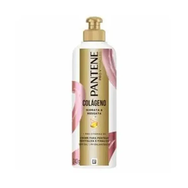 O Creme para Pentear Pantene Colágeno 240 g foi desenvolvido para revitalizar fios danificados e proporcionar hidratação profunda. Sua fórmula conta com colágeno hidrolisado, pró-vitamina B5 e óleo de macadâmia, que juntos ajudam a restaurar a elasticidade dos fios, reduzir a quebra e controlar o frizz, mesmo em ambientes úmidos. Sem adição de sal, o creme promove acabamento leve, desembaraço facilitado e brilho intenso, ideal para uso diário em cabelos tratados quimicamente ou que perderam vitalidade. Aplique sobre os cabelos úmidos ou secos, distribua mecha a mecha e finalize como desejar. Com o uso contínuo, os fios ficam mais fortes, macios e com aparência saudável e alinhada.