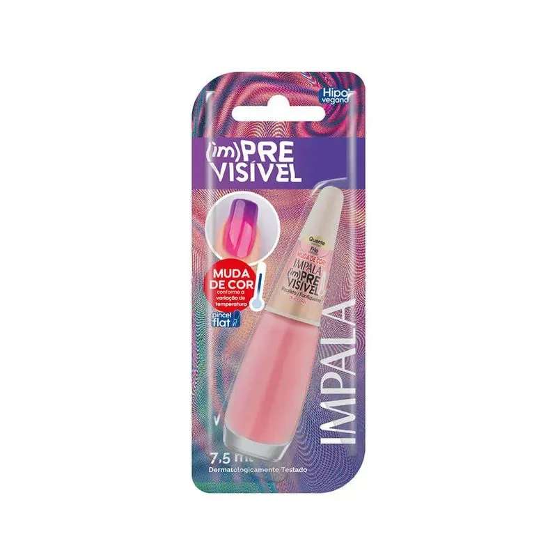 O Esmalte Impala Duo Color (Im)Previsível Realista Fanfiqueira é uma celebração de originalidade, oferecendo uma experiência única com sua tecnologia termossensível. Mudando de cor conforme a temperatura, ele proporciona um visual dinâmico e surpreendente em suas unhas.