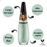 Sua fórmula é vegana, hipoalergênica e livre de crueldade animal, ideal para todos os tipos de unhas, inclusive as mais sensíveis. O esmalte possui pincel flat, que facilita a aplicação uniforme, cobertura perfeita e sem manchas. Além disso, oferece secagem rápida e excelente durabilidade, mantendo as unhas lindas por mais tempo.