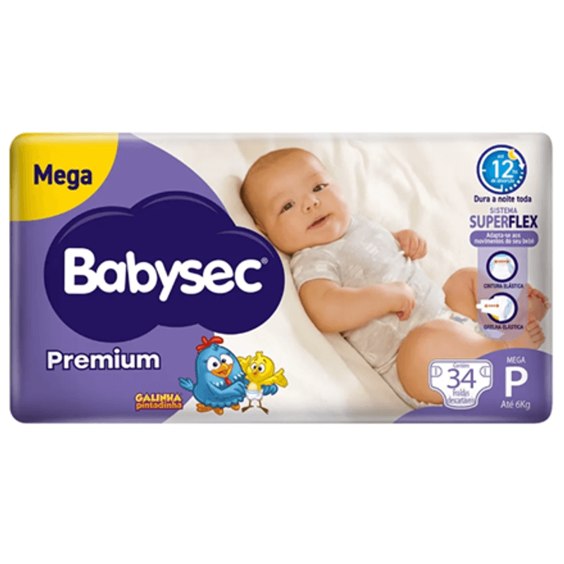 A fralda Babysec Premium Galinha Pintadinha tamanho P (34 unidades) é a escolha ideal para seu bebê que precisa de conforto e proteção eficaz. Com tecnologia de gel superabsorvente, esta fralda garante até 12 horas de secura, evitando vazamentos e mantendo a pele do bebê sequinha, mesmo à noite. Seu sistema FlexiProtect com cintura e orelhas elásticas assegura um ajuste anatômico que acompanha os movimentos, enquanto as barreiras impermeáveis laterais protegem contra escape de líquidos. A cobertura macia ao toque, com design divertido da Galinha Pintadinha, une desempenho premium e alegria para o bebê. Indicada para bebês de aproximadamente até 6 kg, esta fralda descartável une alta absorção, proteção contínua e praticidade diária, sendo perfeita tanto para uso diurno quanto noturno. Escolha Babysec Premium e garanta ao seu pequeno o conforto, liberdade de brincar e o cuidado seguro que ele merece.