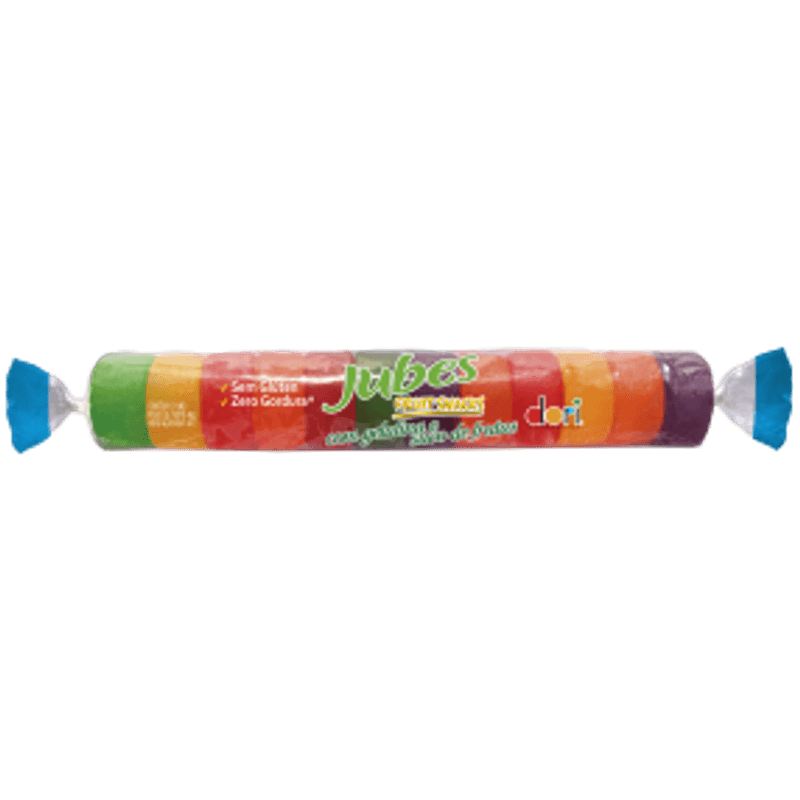 Jubes é a linha de snack com gelatina e com suco de frutas tropicais. São vários sabores para você experimentar: uva, maçã, morango, abacaxi e laranja. Tudo isso no mesmo pacote.