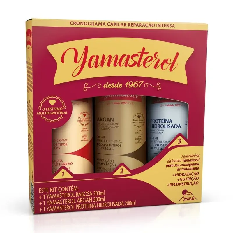 O Kit Creme Capilar Yamasterol Argan + Babosa + Proteção Hidratante 3×200 g oferece hidratação intensa e cuidado completo para todos os tipos de cabelo. A combinação de Argan, Babosa e ingredientes nutritivos fortalece, hidrata e proporciona brilho saudável, mantendo os fios macios e sedosos. Cada pote de 200 g é ideal para uso diário ou semanal, garantindo praticidade e economia. Perfeito para quem deseja cabelos bem tratados, protegidos e com aparência natural.