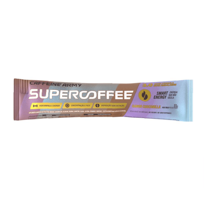 SuperCoffee Choconilla To Go 10 g é um sachê funcional de alta performance que combina café com ingredientes potentes para entregar energia limpa, foco mental e bem-estar em qualquer momento do seu dia. Com blend de café arábica solúvel, cafeína microencapsulada (timerelease), triglicerídeos de cadeia média (TCM C8 e C10), colágeno hidrolisado, cacau alcalino, café verde, taurina, L-tirosina, coenzima Q10, colina, vitaminas do complexo B e outros ativos antioxidantes, sua fórmula foi pensada para manter o estímulo estável, sem picos ou oscilações abruptas. Cada sachê rende com ~ 50 kcal, tem poucos carboidratos, não contém glúten, zero açúcares adicionados e é adoçado com stevia. Basta diluir 1 sachê (10 g) em cerca de 100 mL de água quente ou fria. Ideal para uso ao acordar, antes de treinos, em momentos de estudo ou trabalho intenso, ou sempre que precisar de um impulso extra sem sobrecarregar o organismo.