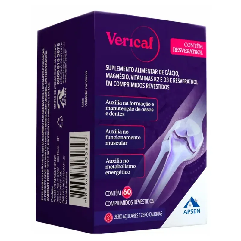 Verical 60 Comprimidos é um suplemento alimentar desenvolvido para auxiliar na manutenção da saúde e bem-estar. Cada comprimido contém ingredientes selecionados para suporte nutricional diário, podendo contribuir para o equilíbrio de vitaminas e minerais essenciais ao organismo. Deve ser consumido conforme orientação do fabricante ou de um profissional de saúde. Armazenar em local fresco, seco e protegido da luz.